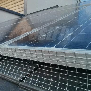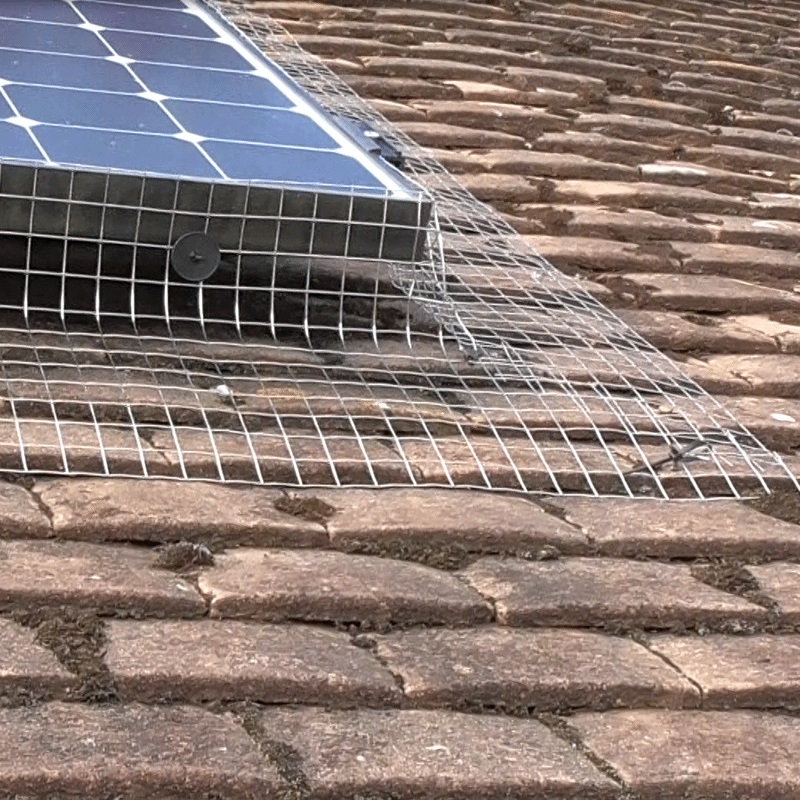 - Installation: Wire mesh is bound to solar panels using patent-pending clips